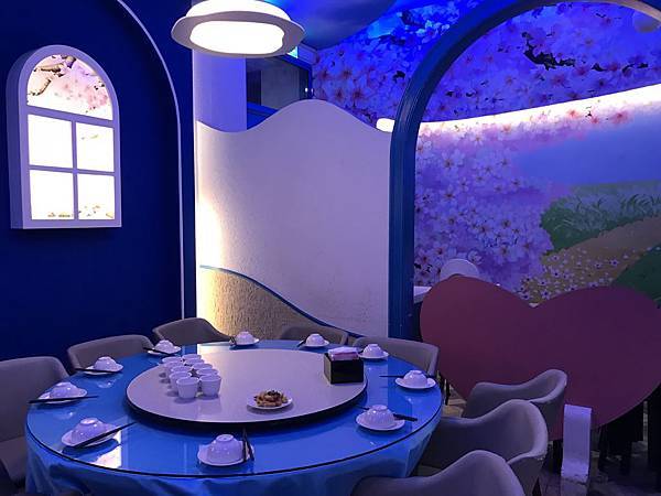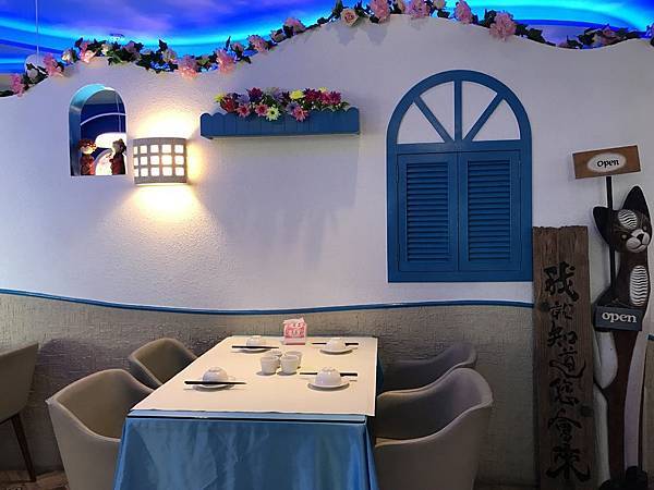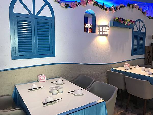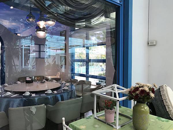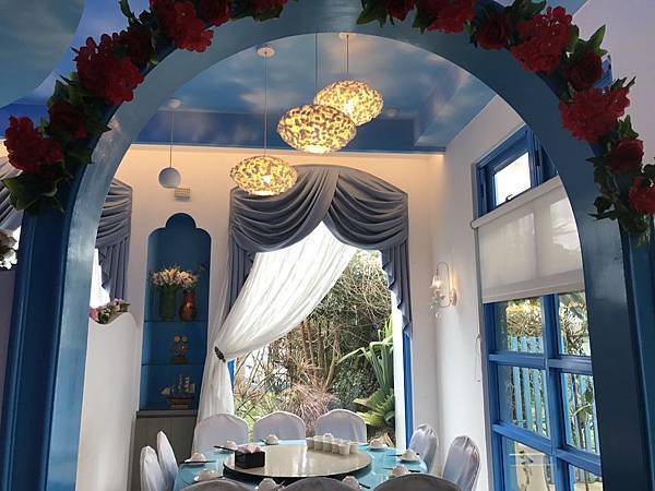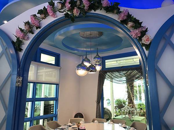 藍舍花園餐廳位處桃園市客家文化館旁,餐廳設有免費停車場,建築物外觀採藍白色希臘地中海風格設計,餐廳內部裝潢高雅並具有濃厚異國風情,用餐座位多且空間舒適寬敞,內部提供多樣傳統客家美食及中式料理,整體用餐環境氣氛佳,是適合家族旅遊團體聚餐的地方