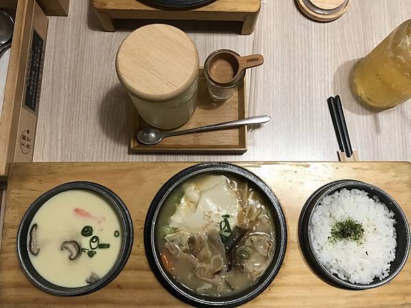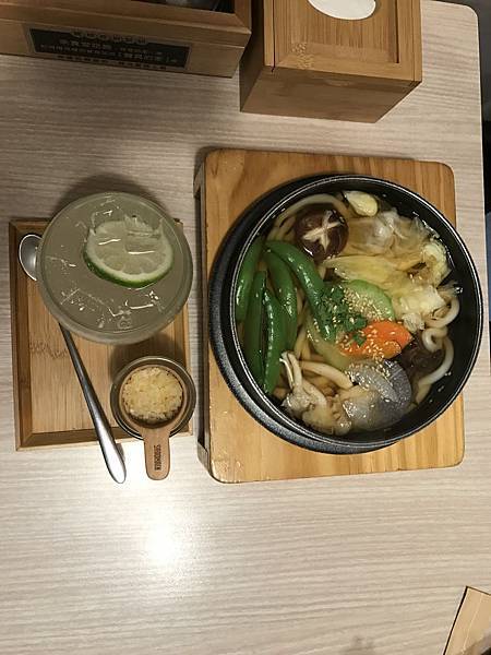 日式餐點有多種選擇,餐點份量適中,有點新和風日式輕食感覺,豆腐鍋蒸蛋口感滑嫩,中間鍋物搭配基本配料吃起來有點像小火鍋,蔬菜什錦烏龍麵口感清爽,烏龍麵Q有嚼勁
